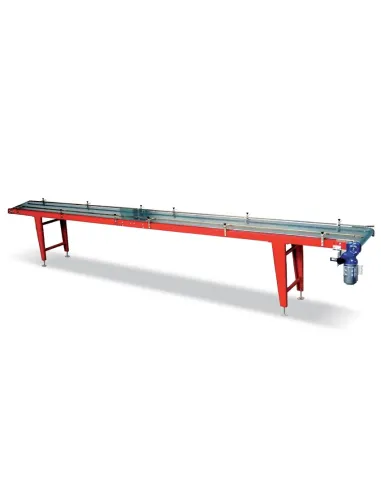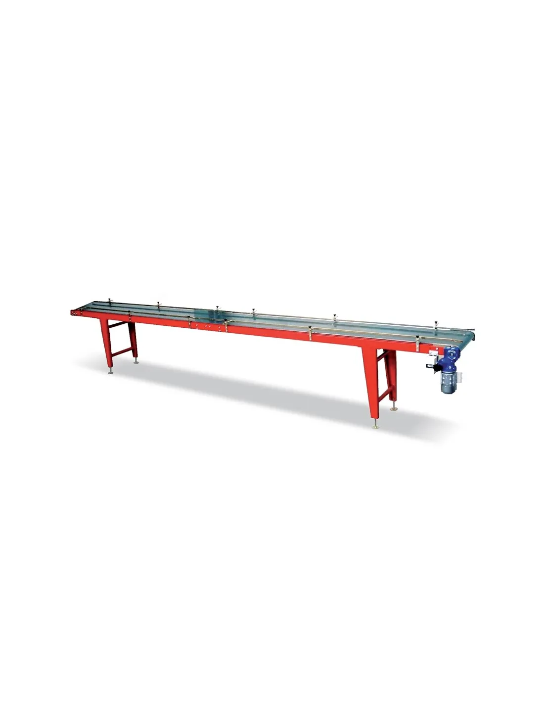 Banda transportoare la viteză reglabilă cu două suporturi, înălțime reglabilă, ghidaje laterale.