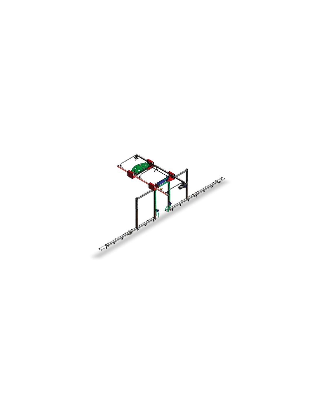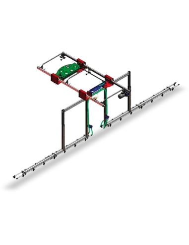 - Sistem cu sina dubla zincate cu carucior separat pentru ghidarea furtunului de irigat.