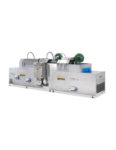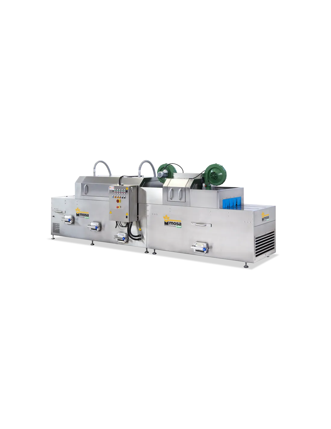 Tăvile intra in statie dispuse orizontal în camera de spălare cu duze fixe. Ventilatoare de uscare și segmentul de sterilizare, duze rotative suplimentare și rezervor de filtrare suplimentar disponibil ca opțional pentru a asigura apă curată în faza de spălare.