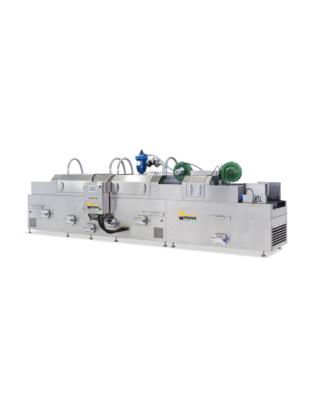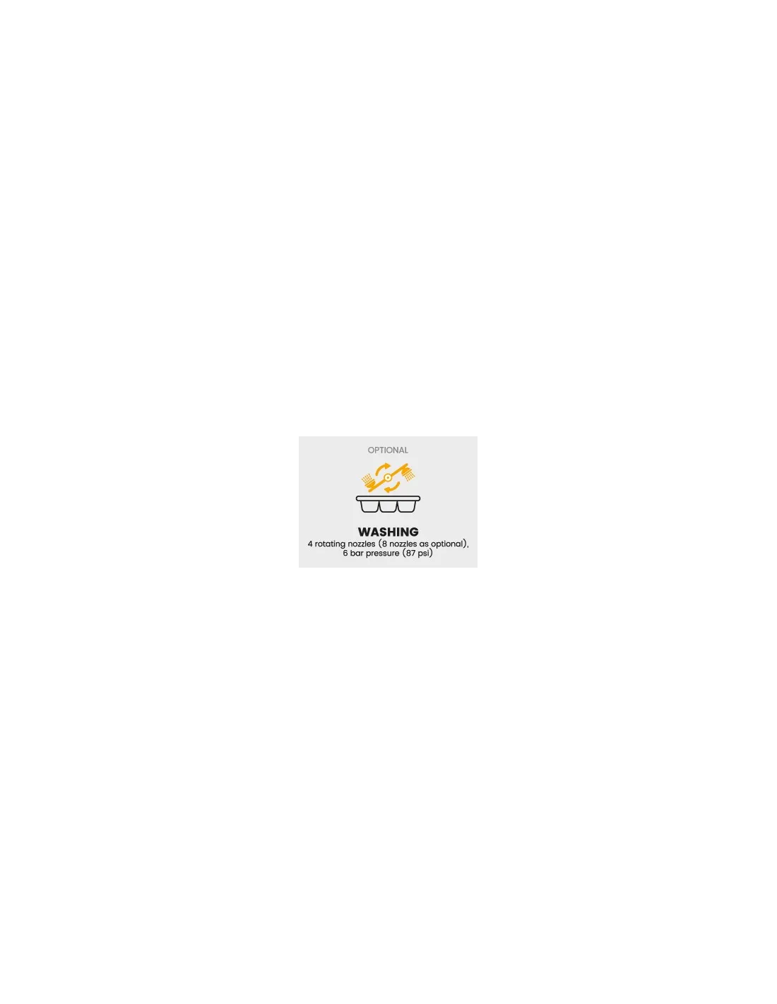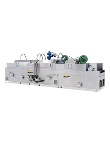 Tăvile intra in statie dispuse orizontal în cele doua camere de spălare cu duze fixe. Ventilatoare de uscare și segmentul de sterilizare, duze rotative suplimentare și rezervor de filtrare suplimentar disponibil ca opțional pentru a asigura apă curată în faza de spălare.