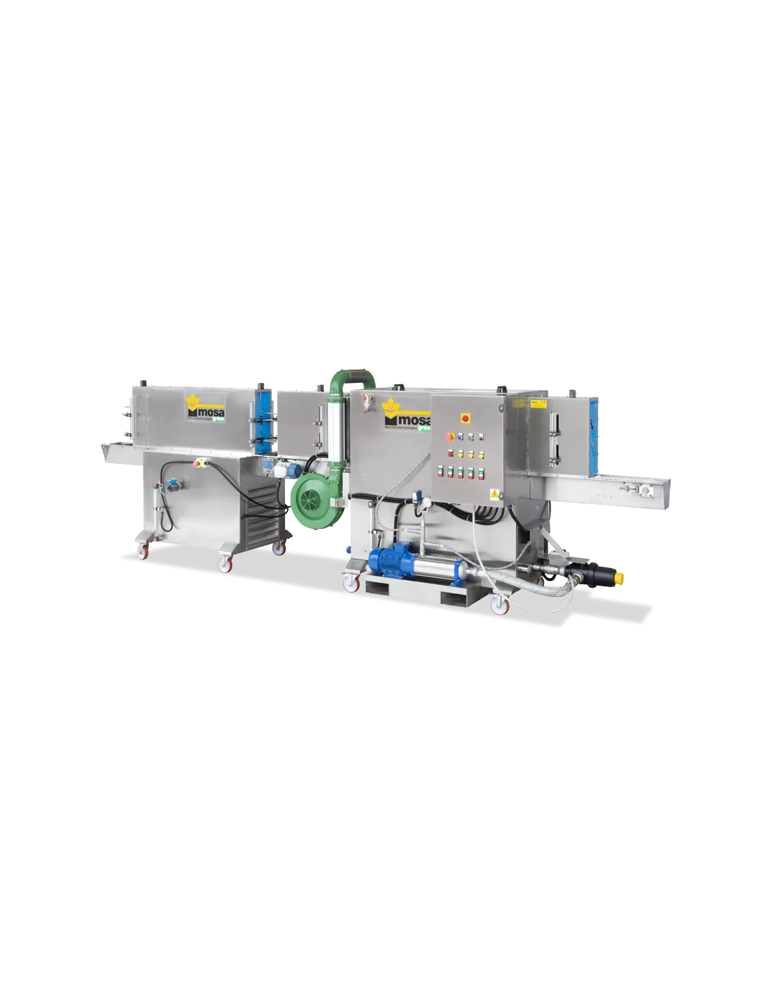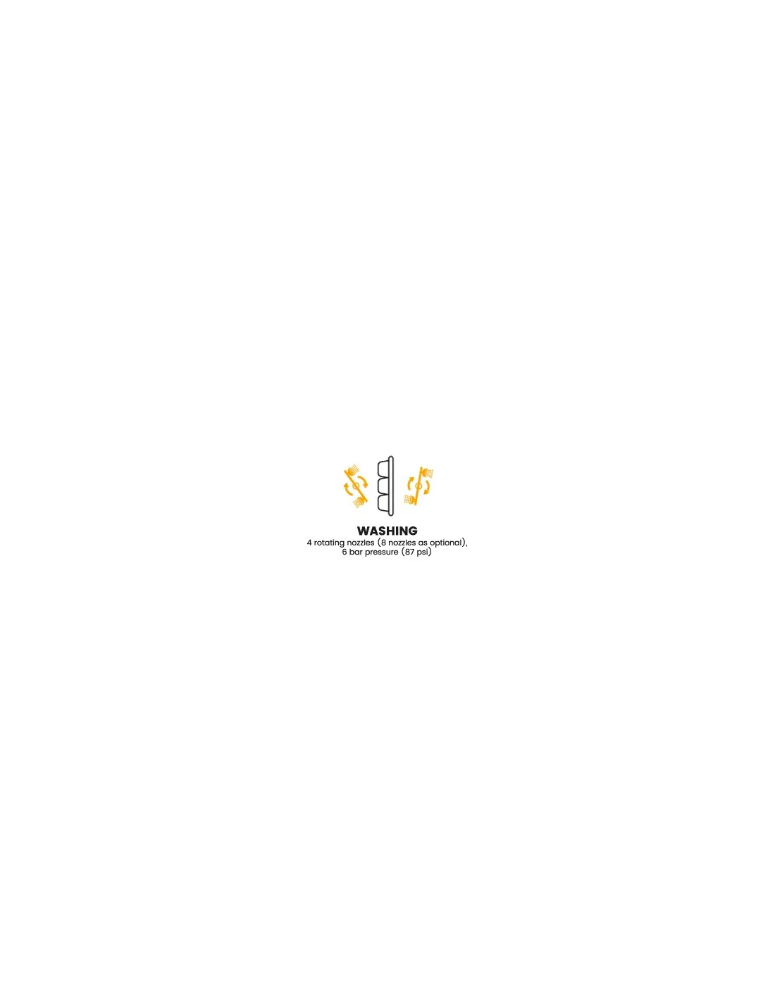 Statia contine o camera de spălare cu duze rotative și segment de sterilizare. Tavile intră in statie pe vertical. Incălzitorul de apă si ventilatoarele disponibil ca opțional pentru a se spăla cu apă caldă.