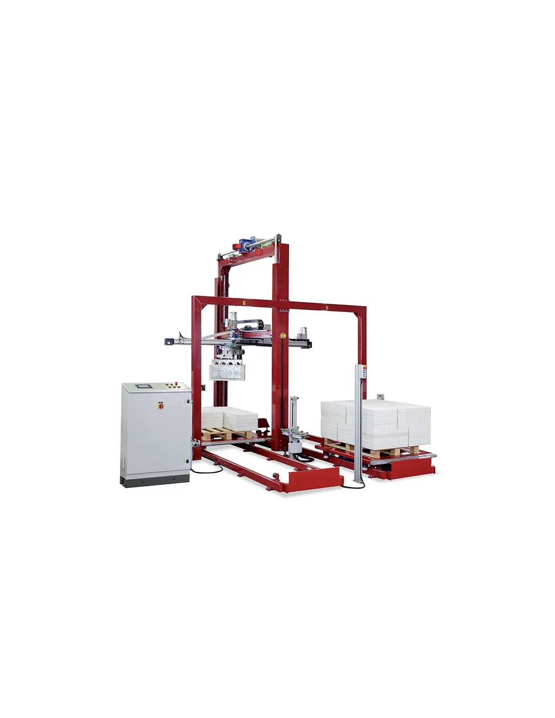 Un robot cu trei axe pentru a gestiona diverse tipuri de tăvi utilizate frecvent în horticultură; colectează tăvile de la un stivuitor sau de la un transportor și le așază pe o paletă conform unei dispuneri programabile la înălțimea dorită. Clema de manipulare poate transporta până la 45 kg. Sistemul de control garantează o viteză mare de mișcare, până la 240 de cicluri / oră.